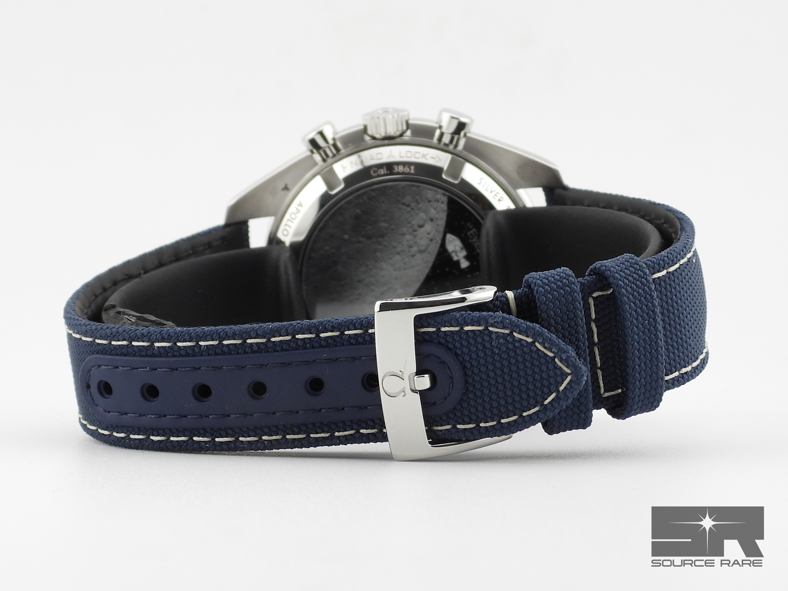 Strap: Blue nylon fabric strap with Omega folding clasp