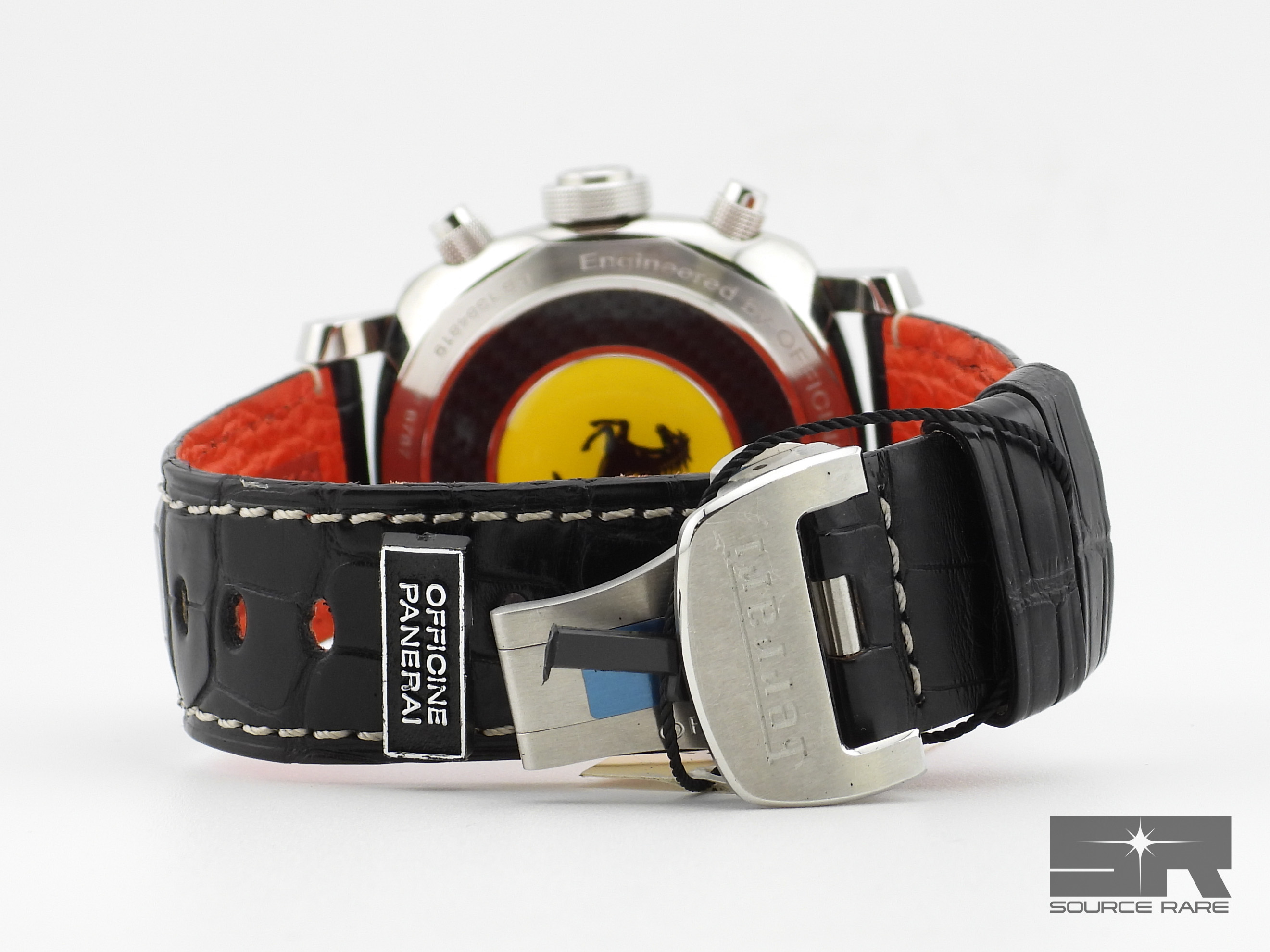 This example is in mint condition, offered with its original box and papers. A rare and collectible piece for both Panerai enthusiasts and Ferrari aficionados.
