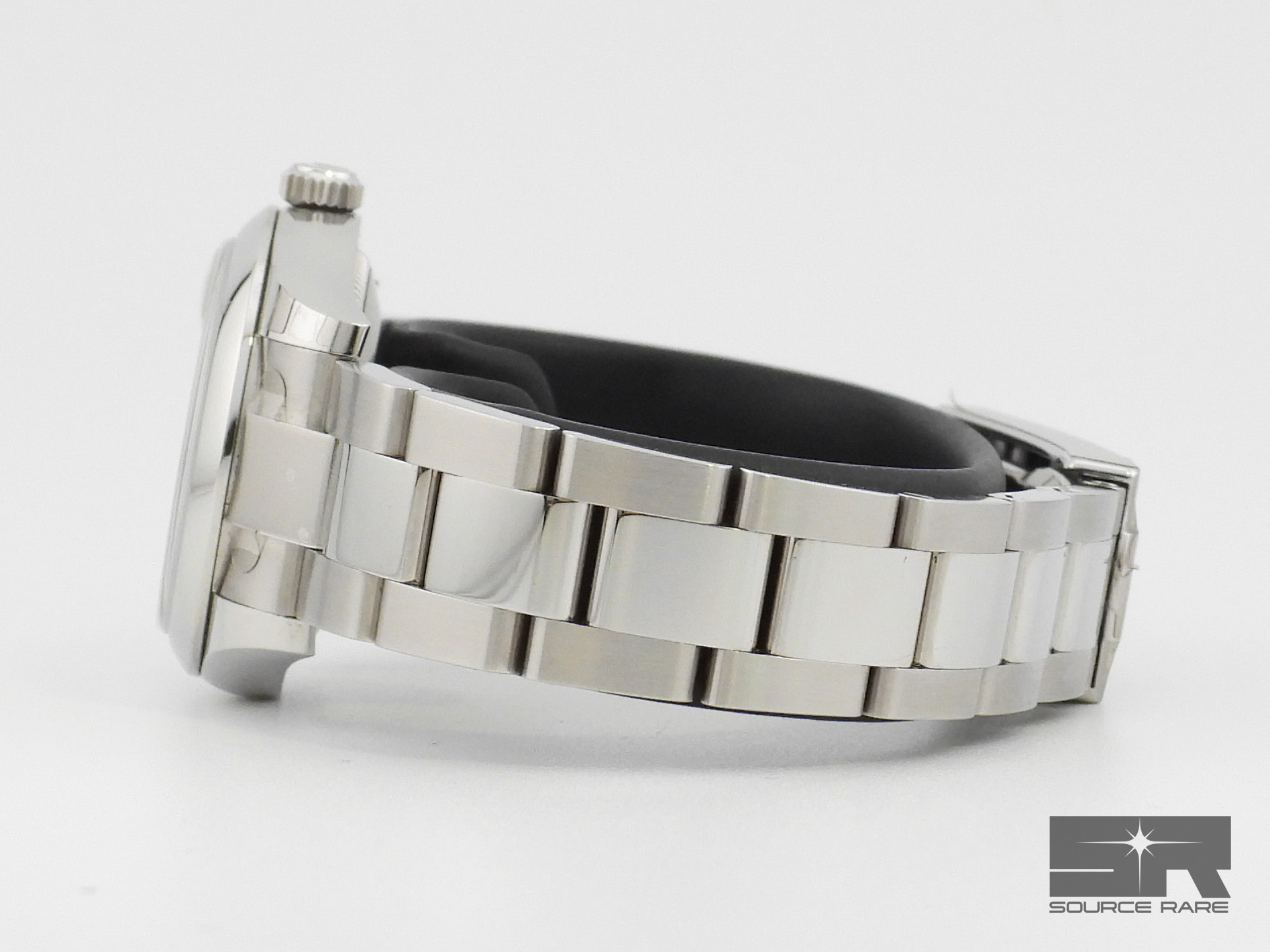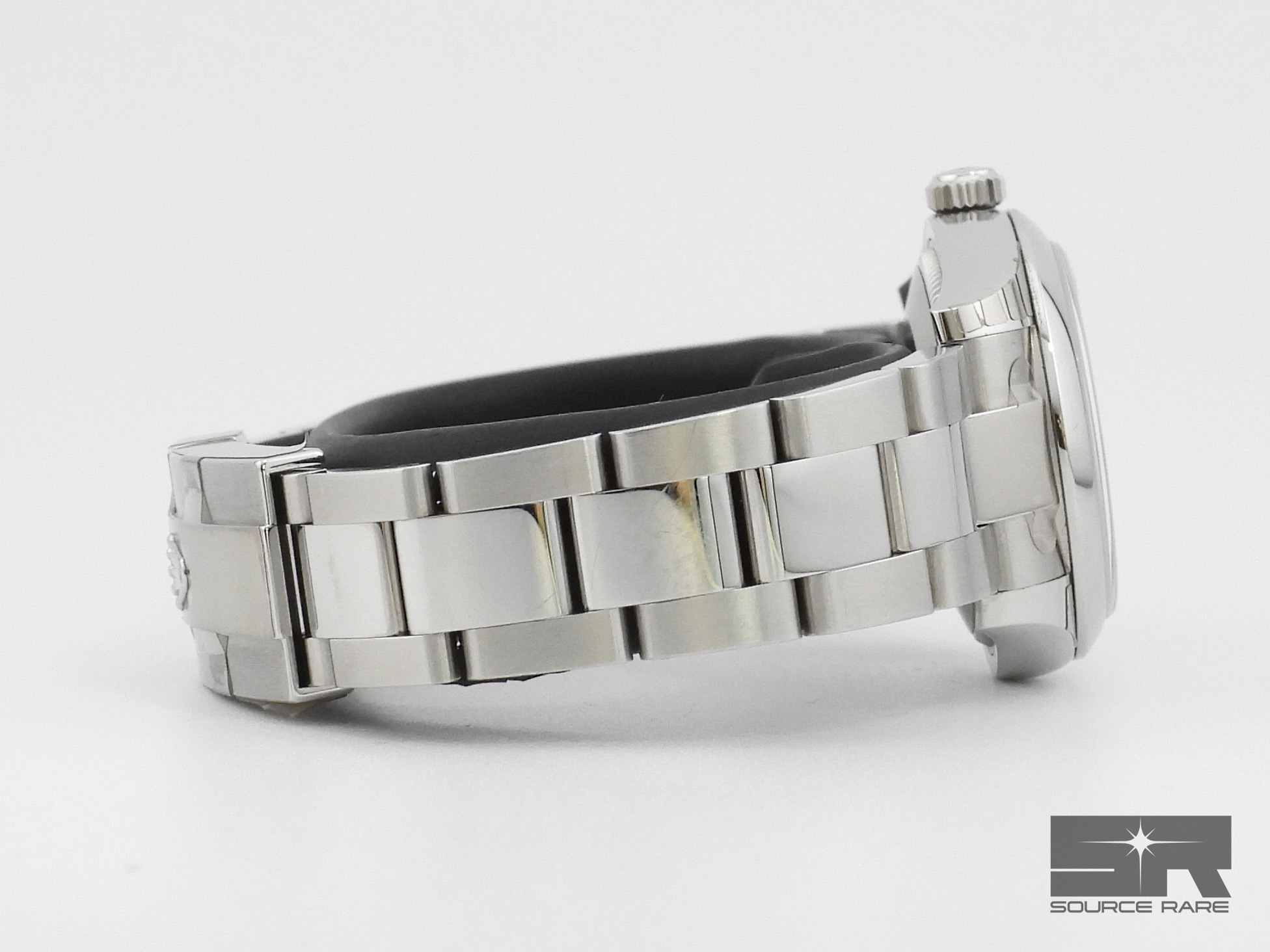 Crafted entirely in Oystersteel with a smooth domed bezel, this model is fitted to a sporty and versatile Oyster bracelet, giving it a slightly more modern and robust feel compared to the Jubilee configuration.