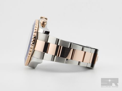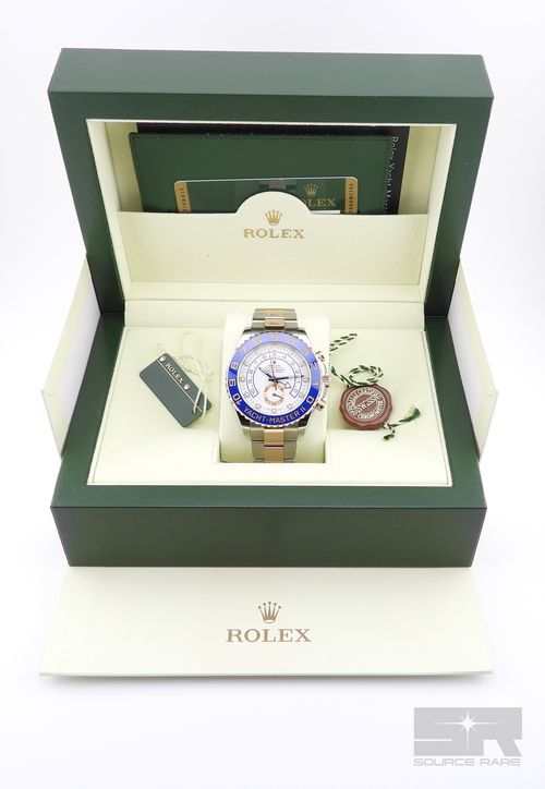 The Rolex Yacht-Master II Ref. 116681 combines cutting-edge regatta chronograph functionality with unmistakable Rolex design language. Crafted in a luxurious combination of Oystersteel and Everose gold, this discontinued model offers commanding wrist presence with its 44mm case, bold white dial, and blue Cerachrom bezel.