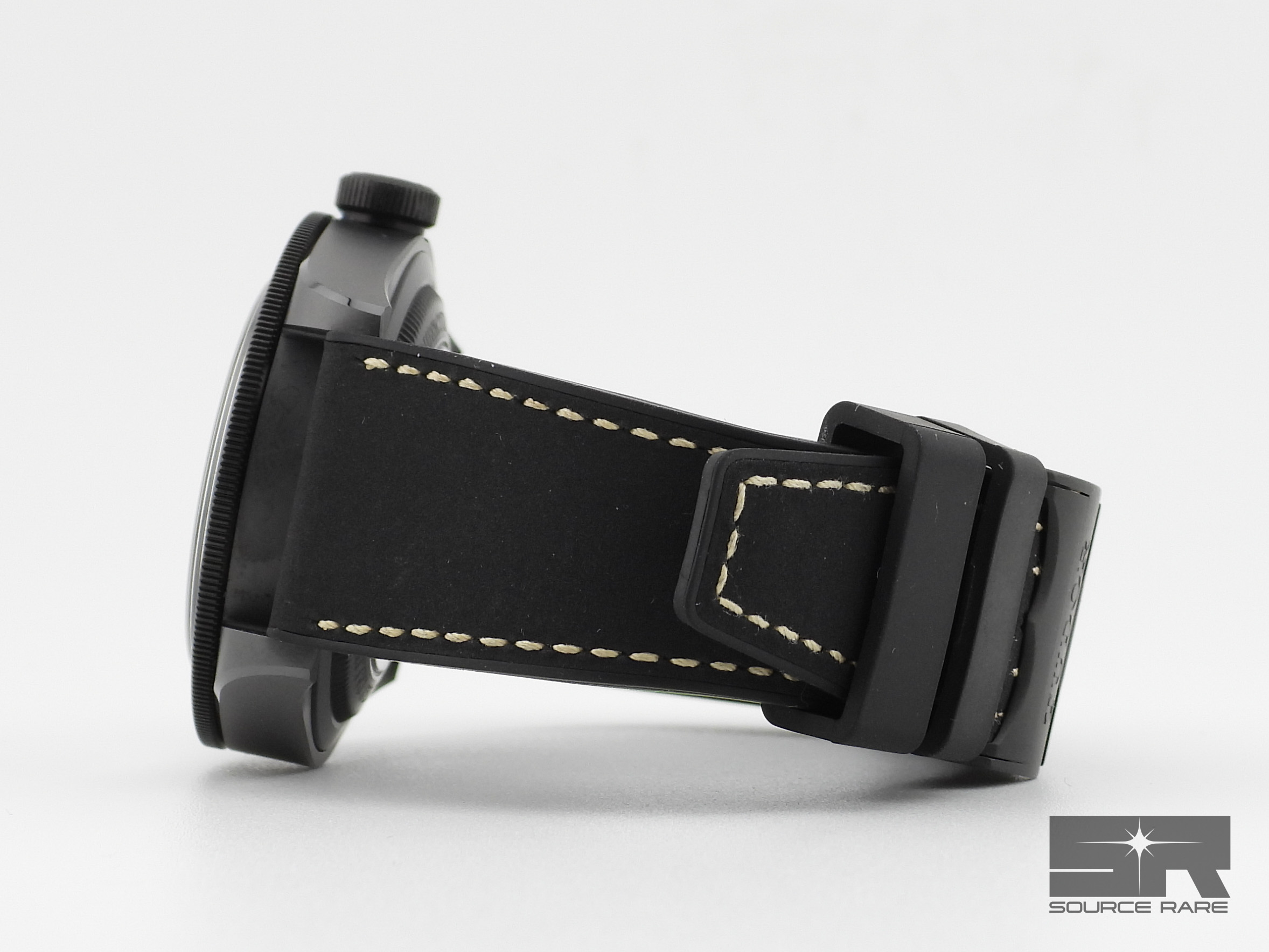 Strap: Hybrid leather and rubber strap with black PVD-treated folding clasp (only)